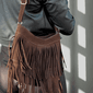 Bolsa Baguete Franja é o equilíbrio perfeito entre estilo e atitude. Com design moderno e toque boho, possui franjas longas na parte frontal que dão movimento e charme ao look. Conta com alça ajustável, fechamento seguro e ótimo espaço interno